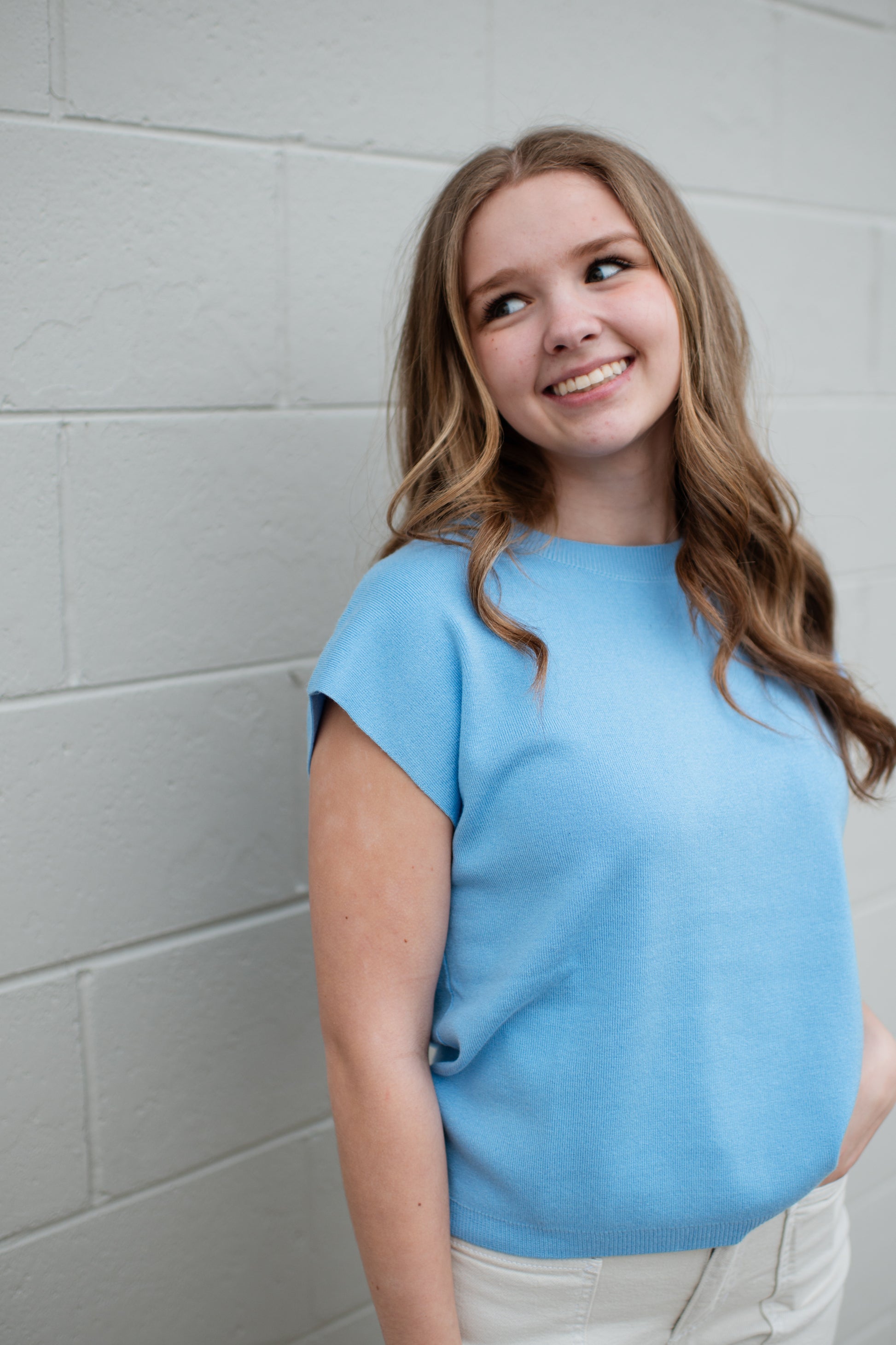 The Delta Top is a versatile soft knit vest that works beautifully on its own or layered over your favorite tees and long sleeves. Its lightweight construction and comfortable fit make it an essential piece for transitional weather, while the calming blue hue pairs effortlessly with any wardrobe. Whether you're dressing up or keeping it casual, this knit vest adapts to your style and keeps you cozy all season long.
