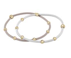These "e"ssentials from Enewton are a long-awaited upgrade to a plain hair tie. Made with a 2mm round elastic cord and 14kt gold-filled beads, this set is a beautiful accessory for everyday wear.