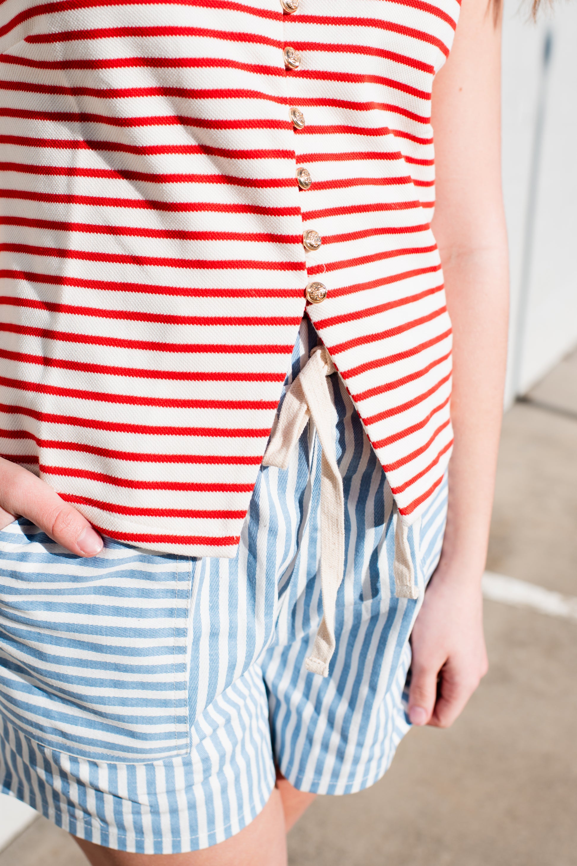 Make a splash this season in the Lucy Shorts, where classic style meets everyday comfort. These striking blue and white vertical striped shorts deliver a timeless look that pairs effortlessly with any summer wardrobe. The adjustable cream tie waistband ensures a perfect fit every time, while a generously sized pocket keeps your essentials within reach. Whether you're heading to the beach or running errands around town, these shorts combine versatility with undeniable charm.
