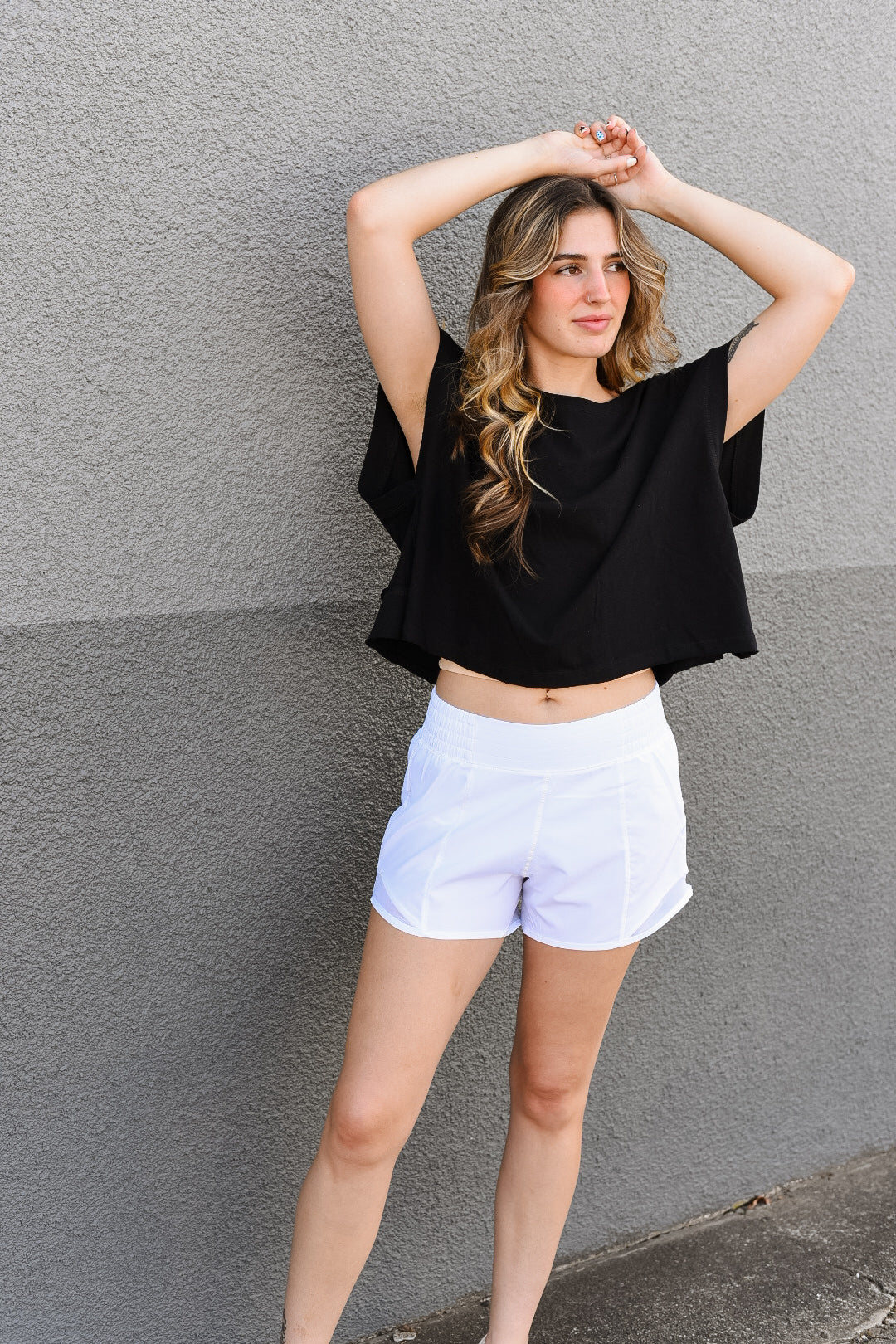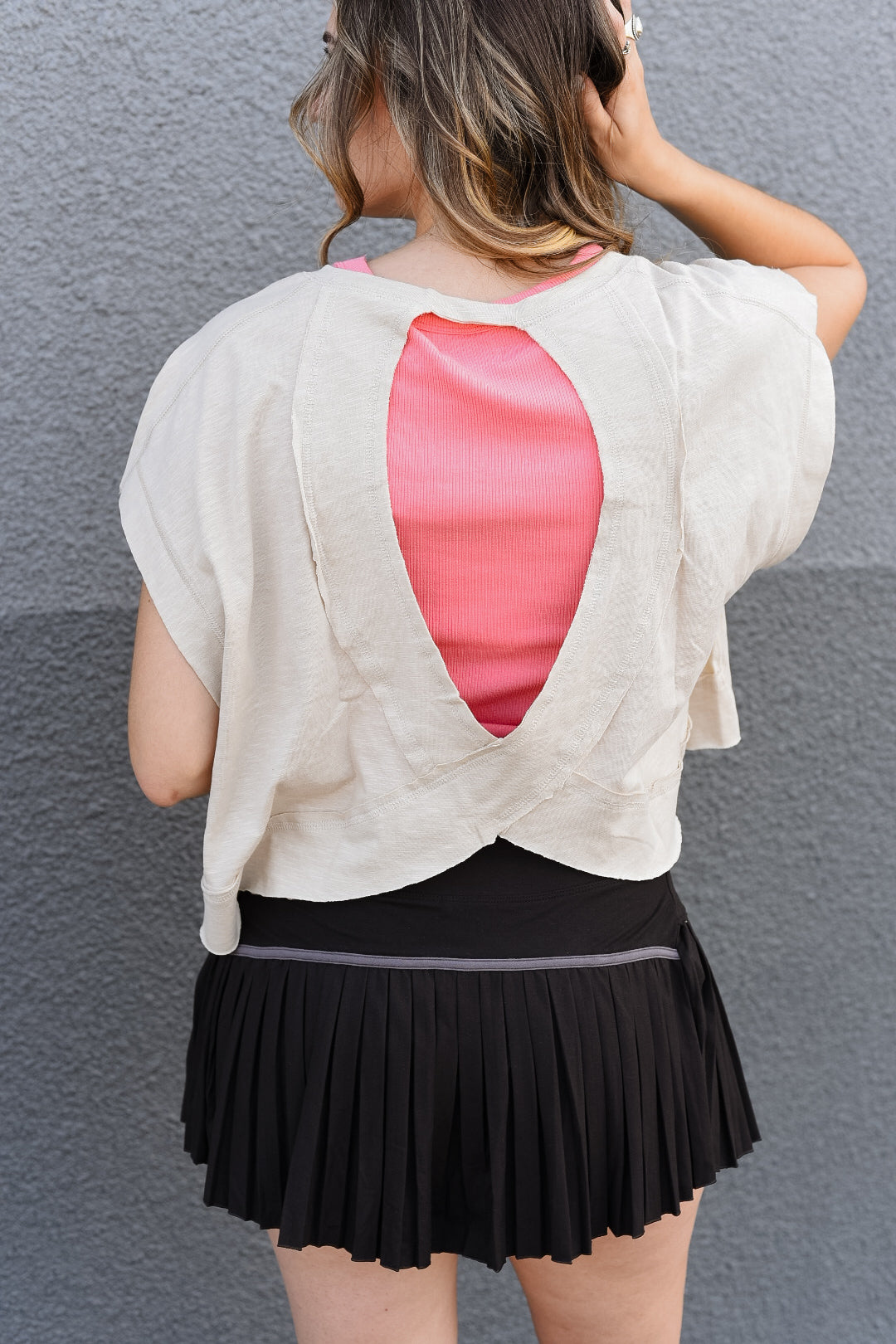 Elevate your wardrobe with the Jalen Top, crafted from breathable, lightweight cotton slub fabric for all-day comfort. Its relaxed, oversized fit and cropped length offer a modern silhouette, while the wide round neckline and dropped armholes provide effortless elegance. Featuring an open back and raw edge details, this short sleeve tee blends understated sophistication with contemporary style. Perfect for a refined yet casual look.