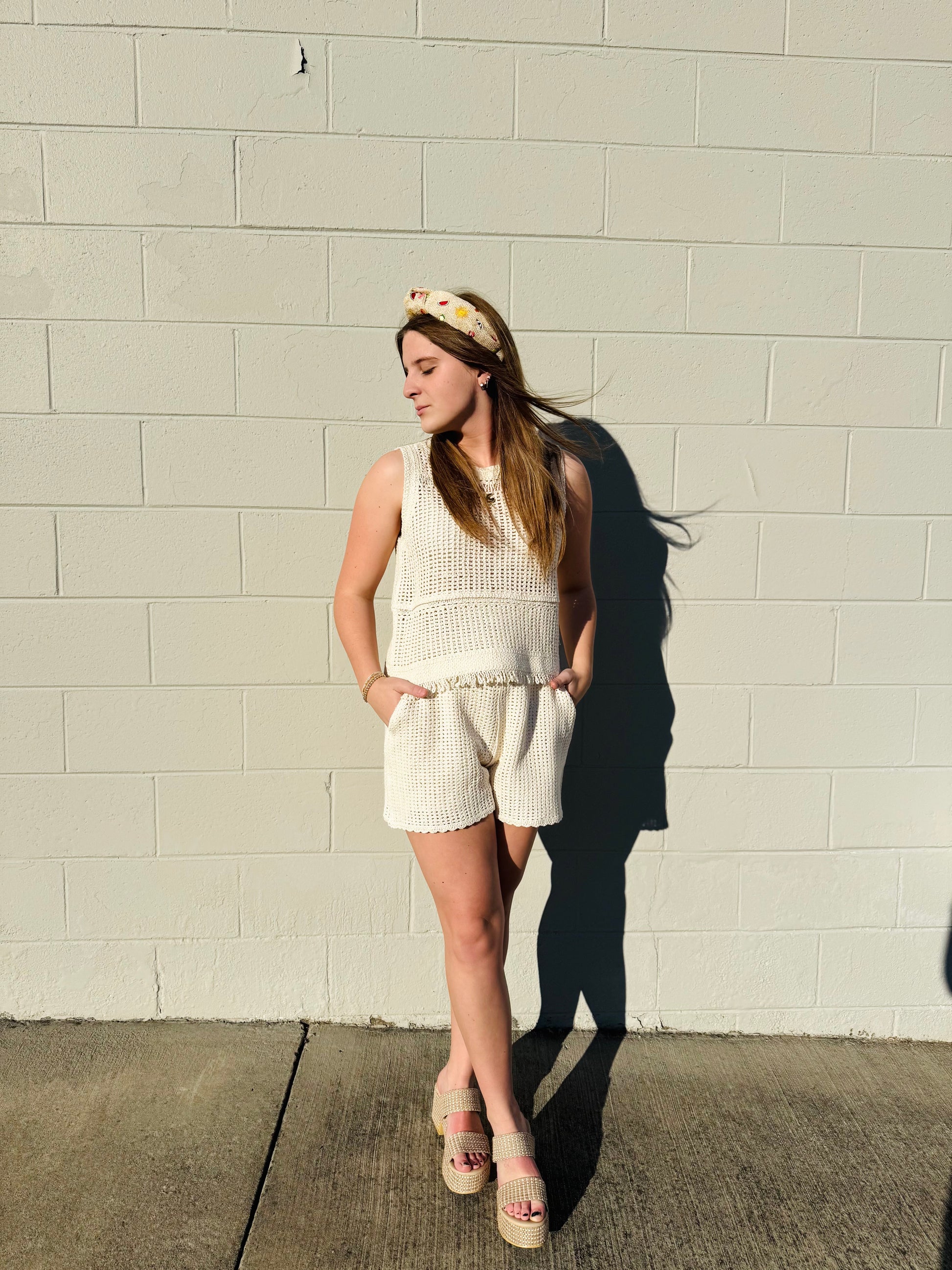 The Malina Top, crafted from a cream woven sweater vest material, is designed to provide comfort and style during vacation. Its breathable fabric ensures optimal airflow, making it suitable for warm climates. The versatile design allows for easy pairing with various outfits, enhancing your travel wardrobe efficiently.