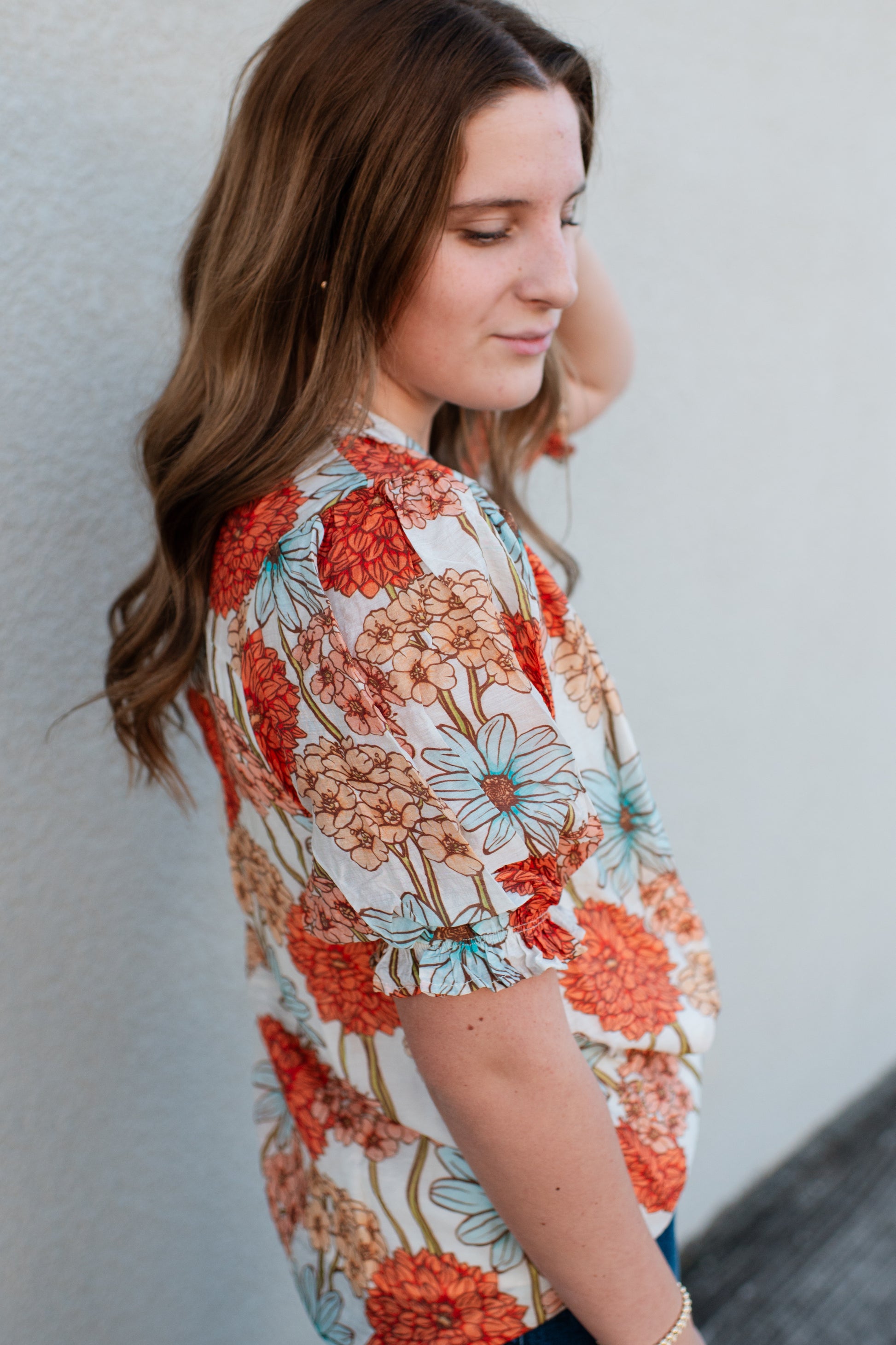 The Noor Top brings effortless elegance to your seasonal wardrobe. This short-sleeved piece features a refined floral design that adds visual interest without compromising sophistication. Crafted for warmth and comfort, it transitions seamlessly from casual days to polished evenings.