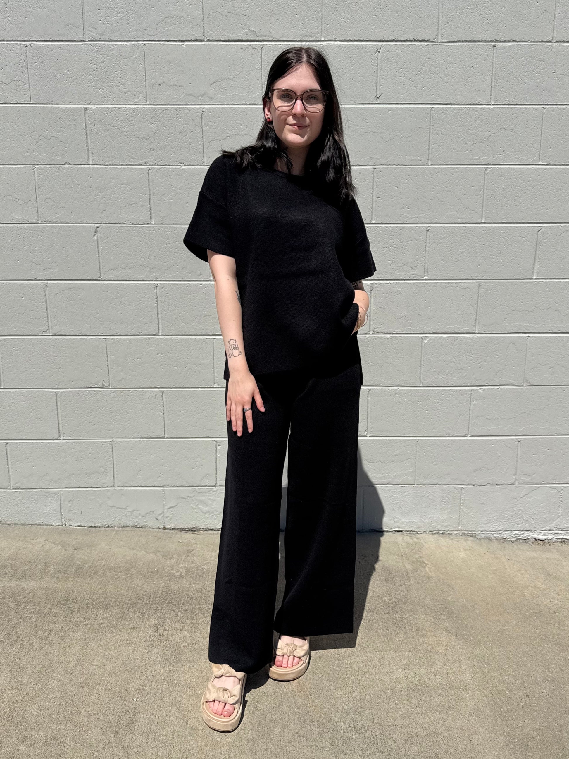 The Seraphina Top is a sophisticated black knit piece designed for seamless seasonal transitions. Its thick fabric offers subtle warmth, making it ideal worn alone during mild fall days or layered under jackets as temperatures drop. The short sleeves blend comfort and style, perfect for versatile autumn looks.